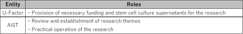 This joint research utilizes the stem cell culture supernatant derived from dental pulp of deciduous teeth, developed by Professor Minoru Ueda, Emeritus Professor at Nagoya University Graduate School of Medicine, who is a leading expert in stem cell culture supernatants and a director at U-Factor. U-Factor will provide the stem cell culture supernatant, and AIST will conduct various basic studies on its mechanisms and clinical research applications. The stem cell culture supernatant derived from dental pulp is expected to have a more substantial effect in activating the body’s stem cells, as it contains a higher concentration of growth factors compared to other mesenchymal stem cell-derived supernatants.