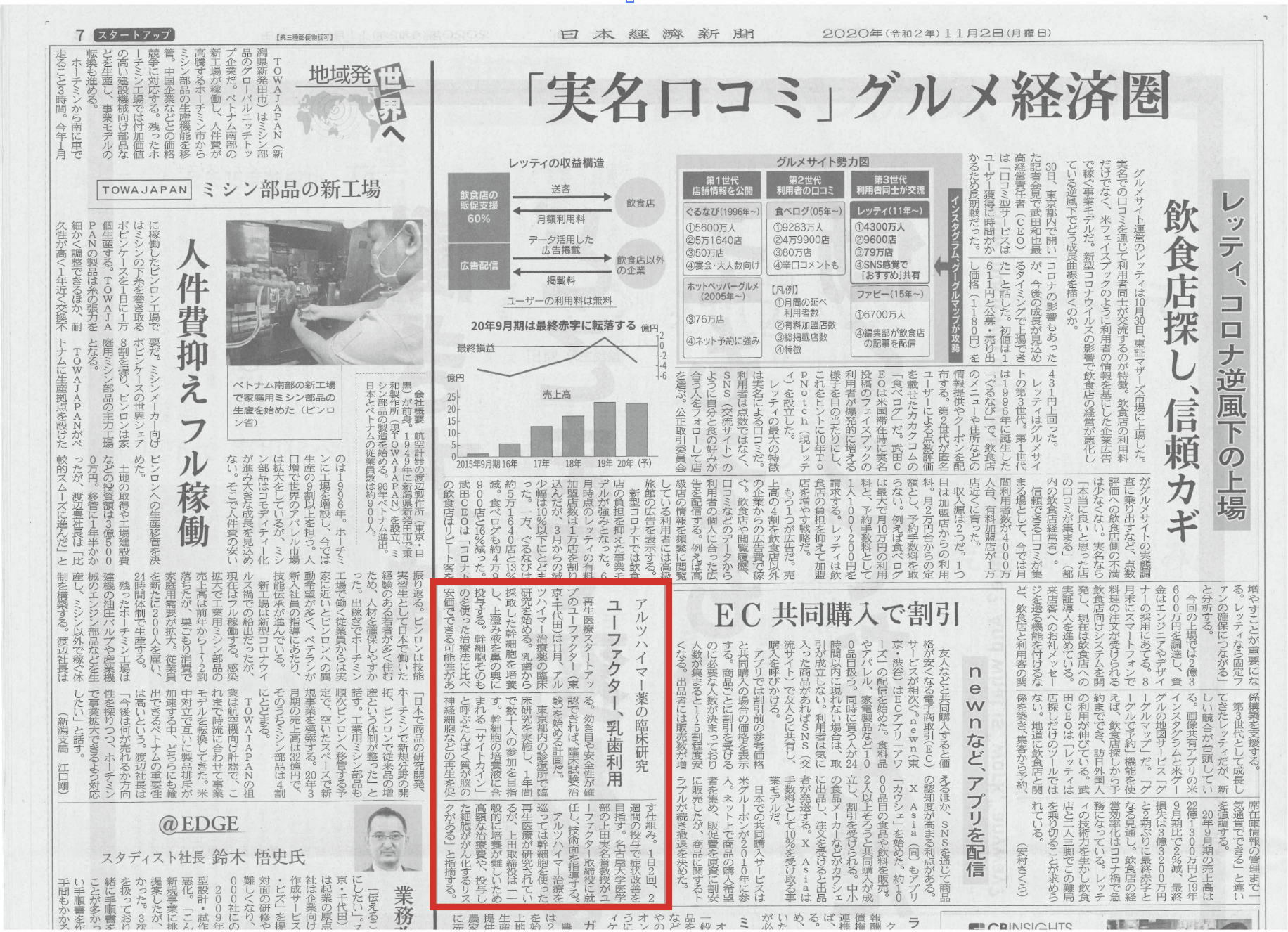 11月2日(月)日本経済新聞・朝刊(スタートアップ面)に記事が掲載されました。